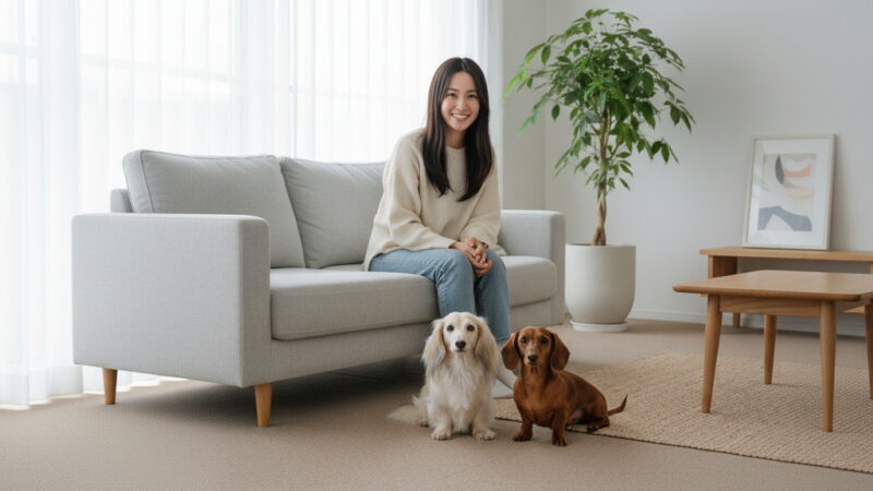 スムースの毛は短く、硬く、そして真っ直ぐなため、ソファやカーペット、フリース素材の洋服などに深く刺さるように付着する性質があります。一度刺さると掃除機だけではなかなか取り除きにくく、粘着式のクリーナーや専用のブラシが必要になることも珍しくありません。これは長い毛が表面に絡まるロングとは異なる種類の「掃除の大変さ」と言えるかもしれません。