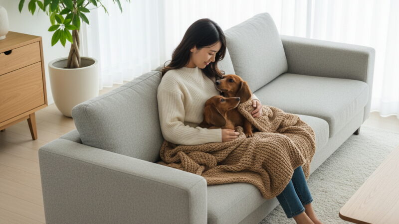 - 室内の温度と湿度の管理: 人間が快適だと感じる温度でも、床に近い場所で生活する犬にとっては寒い場合があります。エアコンやヒーターを活用し、犬が主に過ごす場所の室温を20~23度程度に保つように心がけてください。また、暖房による空気の乾燥は皮膚トラブルの原因にもなるため、加湿器を併用することも有効です。